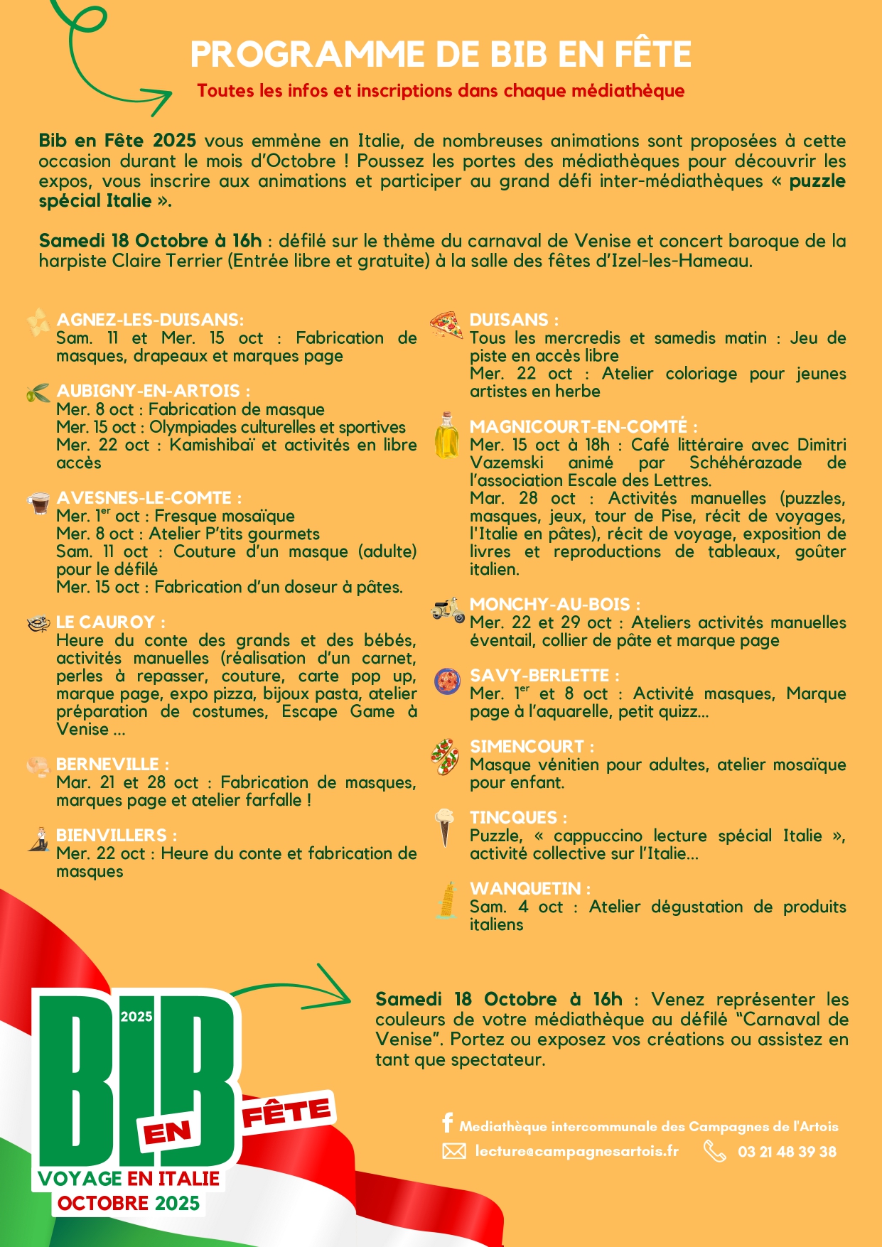Tout au long du mois d’octobre, les médiathèques du territoire mettent à l’honneur l’Italie à travers des animations, expositions et rencontres pour petits et grands.
