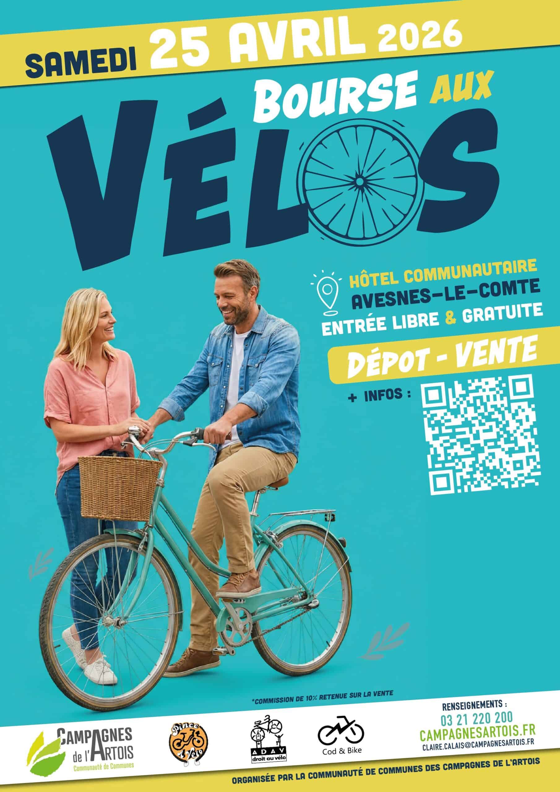 Venez nombreux à la Bourse aux vélos organisée en partenariat avec la Communauté de Communes des Campagnes de l’Artois à Avesnes-le-Comte. Venez acheter ou vendre votre vélo d’occasion dans une ambiance conviviale ! Profitez également d’animations pour petits et grands lors de cet événement dédié aux passionnés de vélo et aux amateurs de bonnes affaires !
