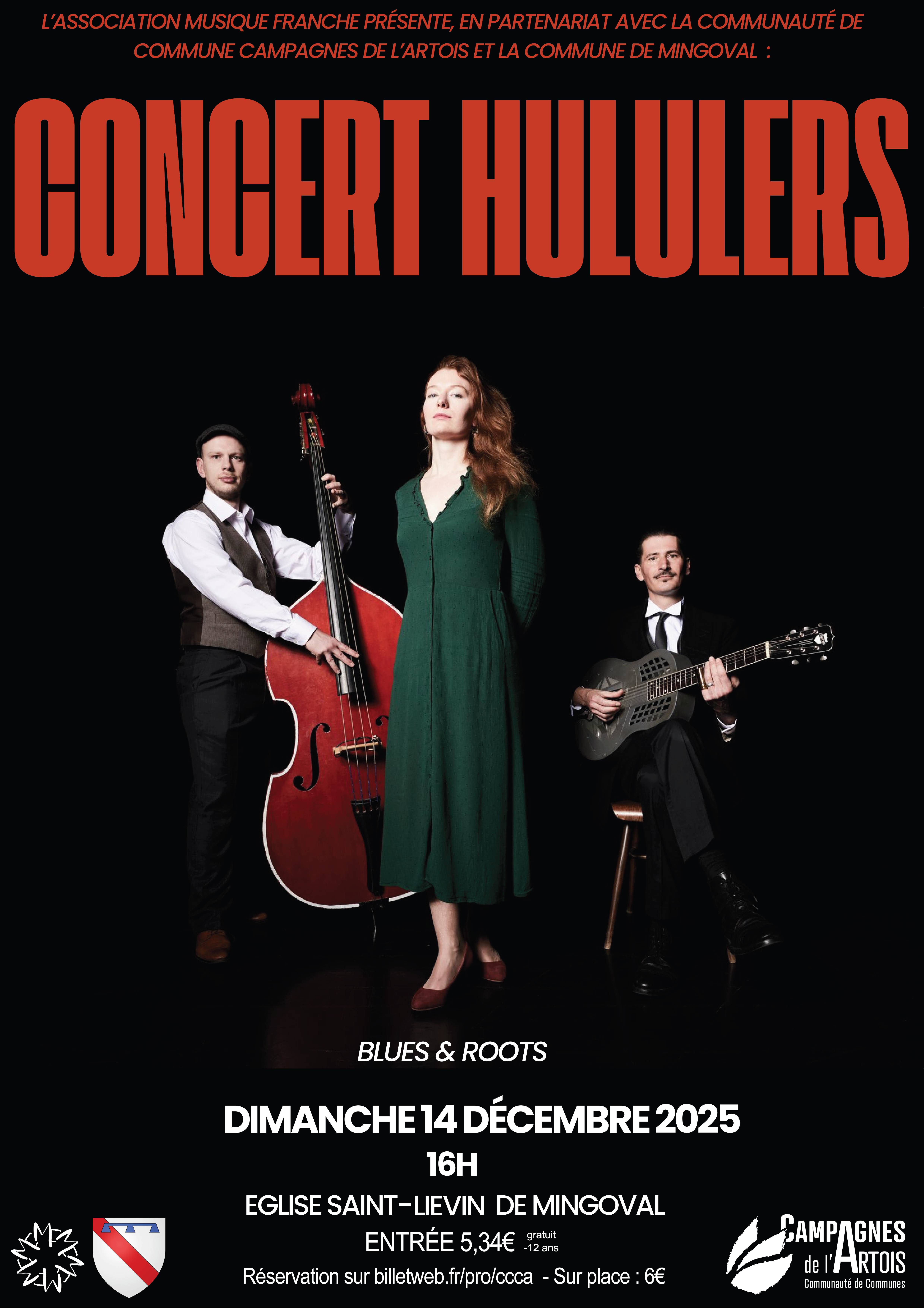 Rendez-vous le dimanche 14 décembre à Mingoval pour un concert blues & roots envoûtant, porté par le trio des Hululers à l’église Saint-Martin.