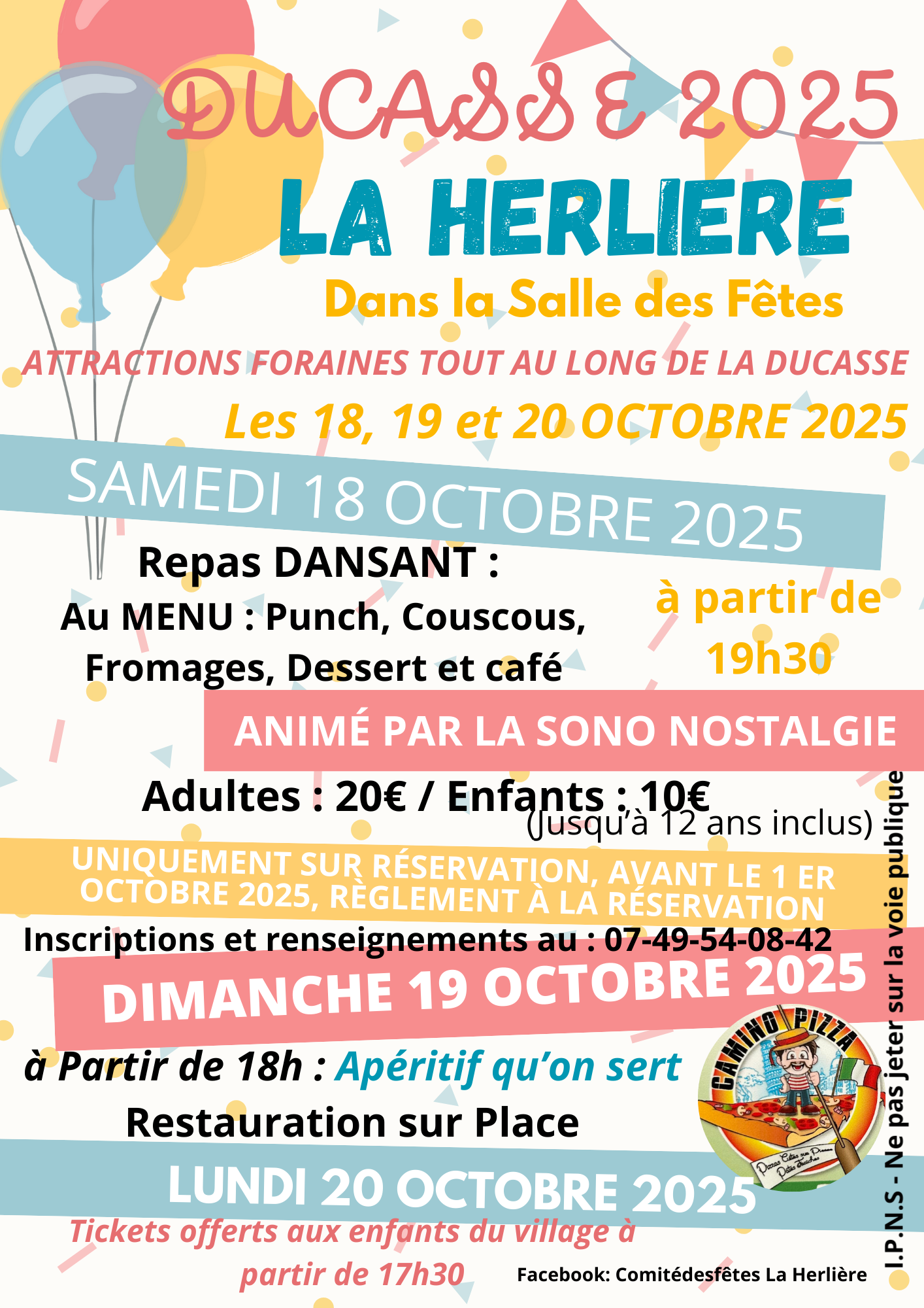 Attractions foraines, repas dansant le samedi, apéritif le dimanche et tickets offerts aux enfants le lundi pour trois jours de fête à La Herlière.