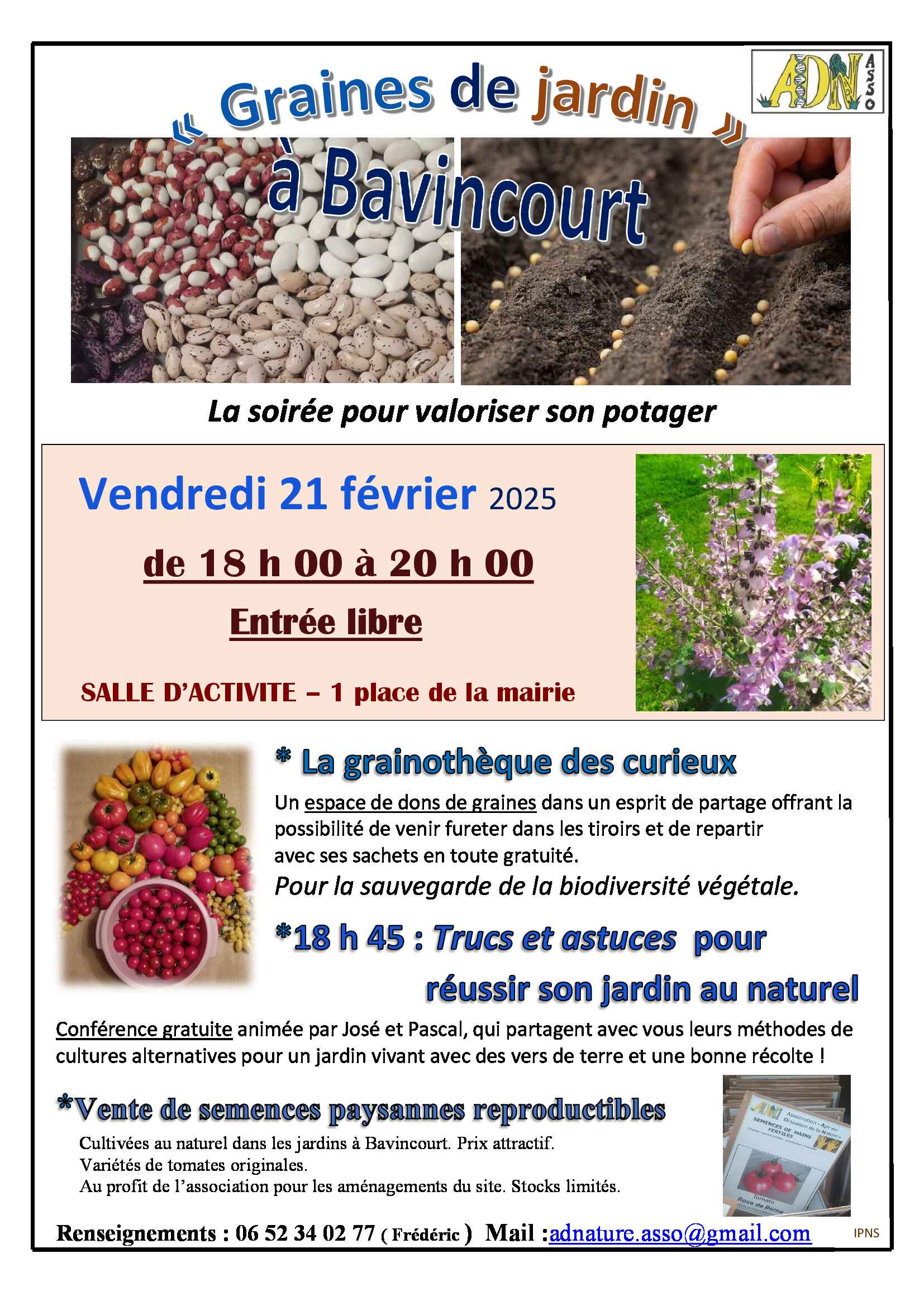 Rendez-vous pour "Graines de jardin" à Bavincourt l'Arbret le vendredi 21 février de 18h à 20h.