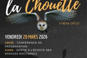 Rendez-vous le vendredi 20 mars 2026 à la salle des fêtes de Frévin-Capelle pour une conférence suivie d’une sortie nocturne à l’écoute des rapaces.