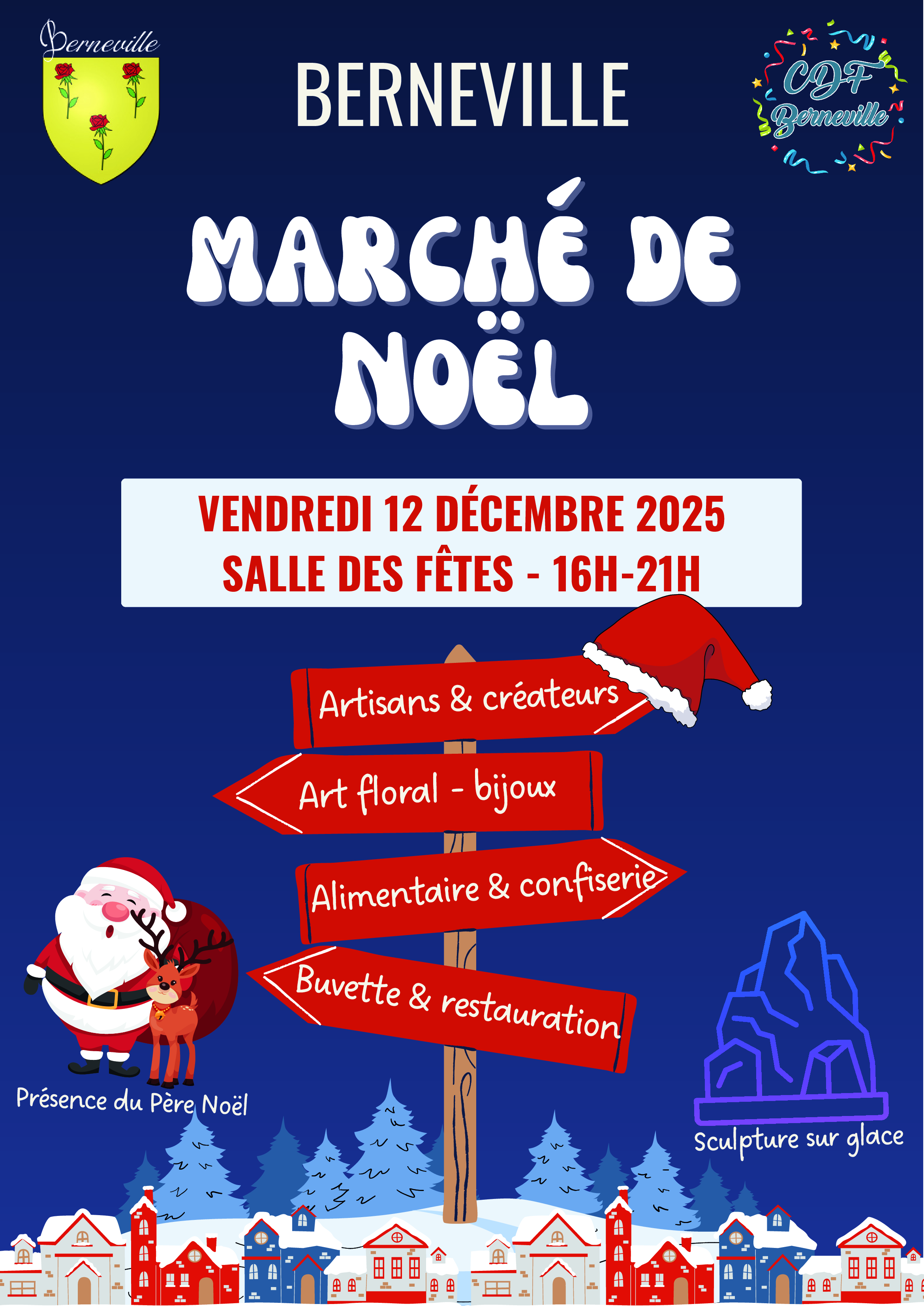 endez-vous le vendredi 12 décembre à Berneville pour un marché de Noël festif avec artisans, gourmandises, et la présence du Père Noël.