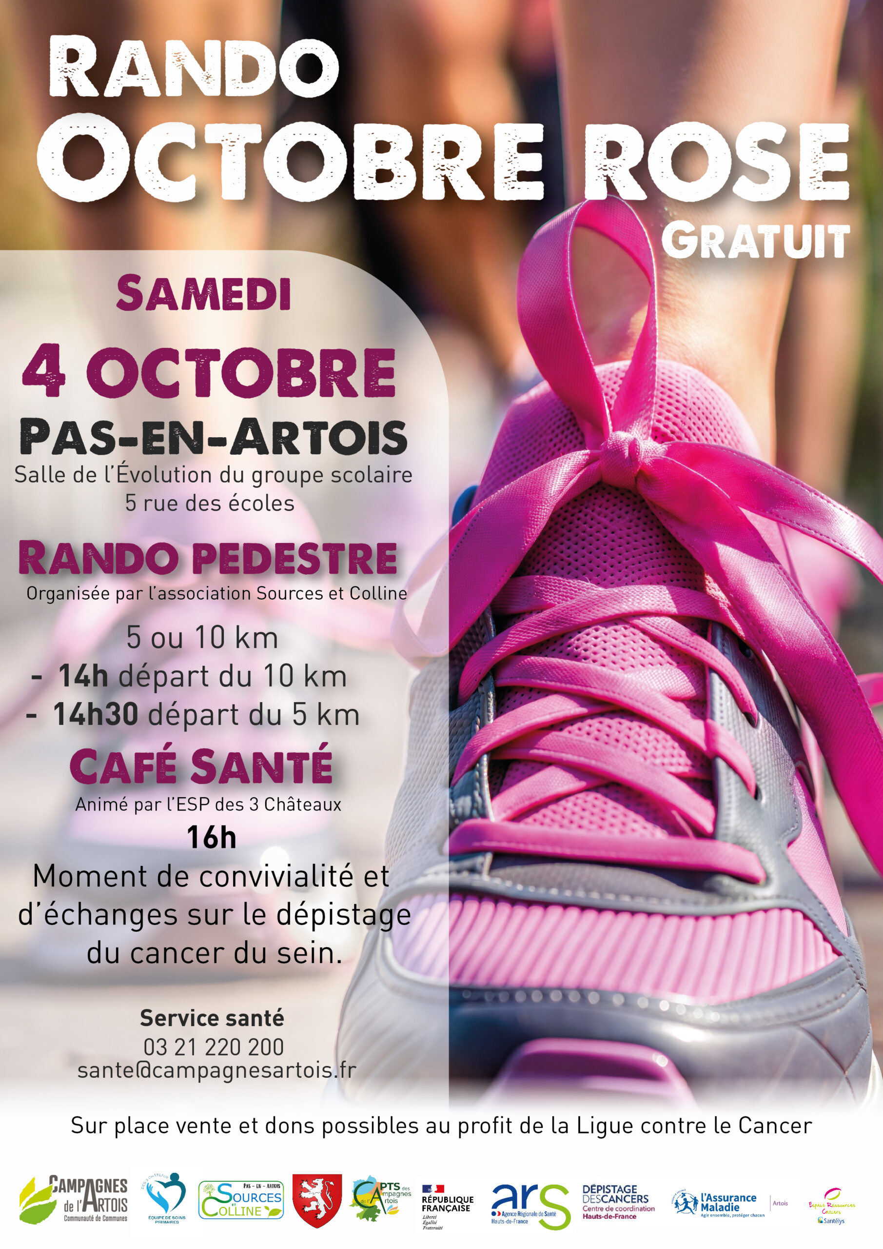 Le 4 octobre à Pas-en-Artois, participez à une rando pédestre de 5 ou 10 km suivie d’un café santé sur le dépistage du cancer du sein.