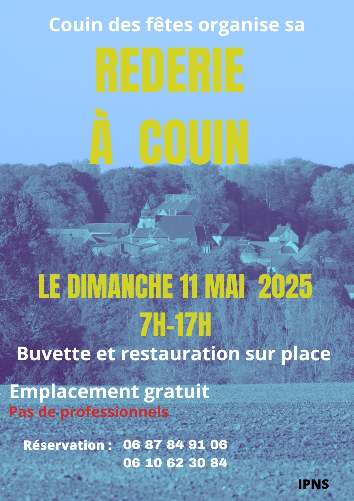 Rendez-vous à Couin pour la réderie le dimanche 11 mai 2025 de 7h à 17h, emplacement gratuit (pas de professionnels), avec buvette et restauration sur place !