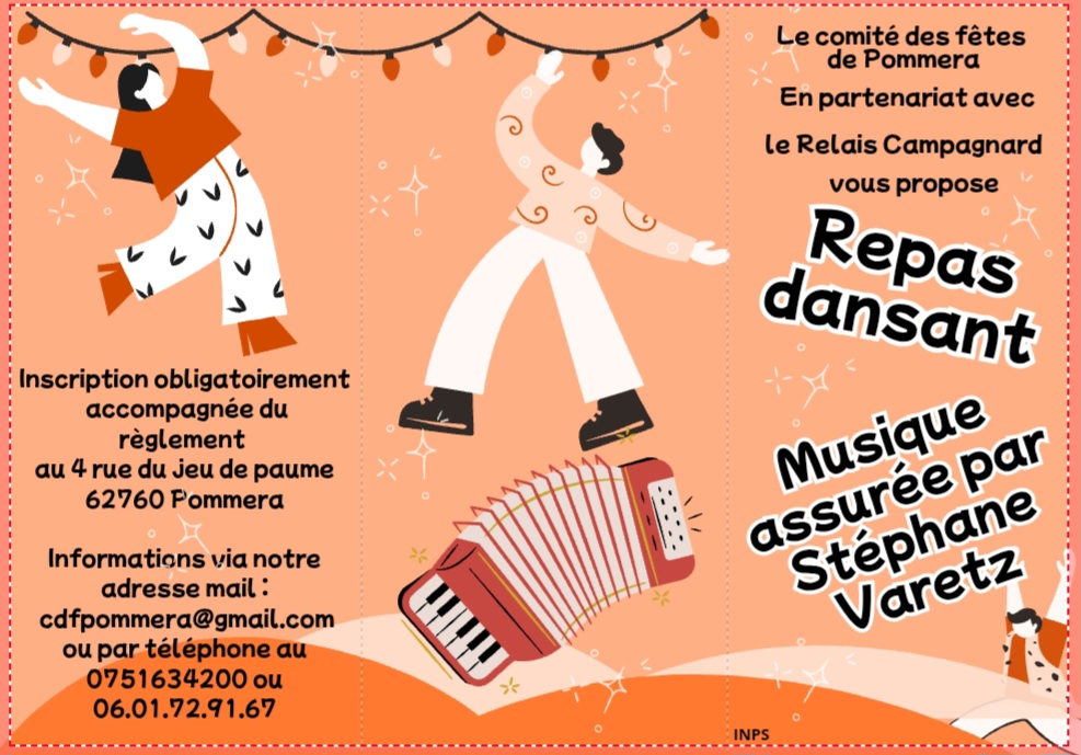 Rendez-vous le samedi 24 janvier 2026 à 12h, au Relais Campagnard de Pommera, pour un repas dansant convivial animé par Stéphane Varetz, organisé par le Comité des fêtes de Pommera.