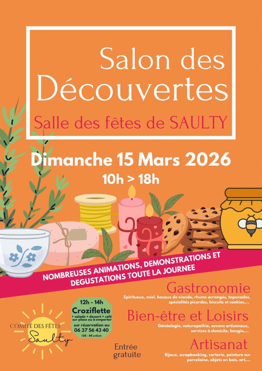 Rendez-vous le dimanche 15 mars de 10h à 18h à la salle des fêtes de Saulty pour une journée d’animations, dégustations et découvertes autour de la gastronomie, du bien-être et de l’artisanat.