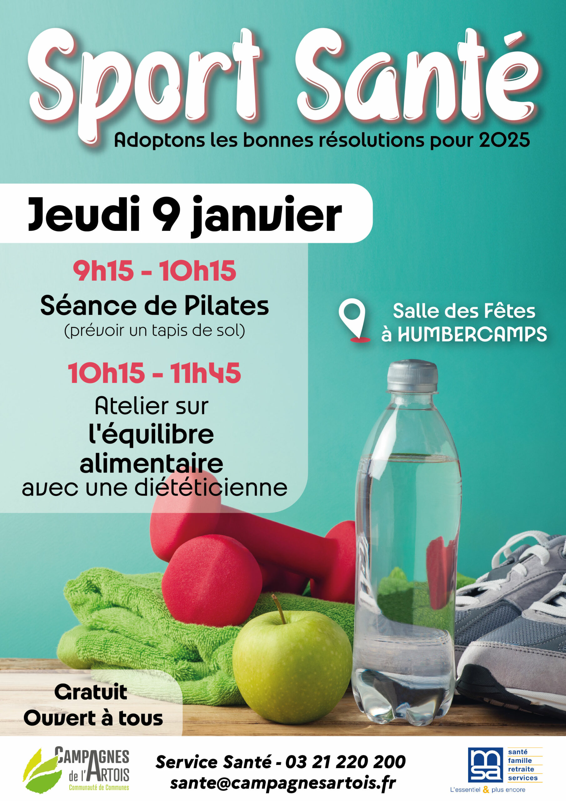 Les services Sport et Santé vous proposent de participer à une matinée consacrée au Sport Santé et à la Nutrition le jeudi 9 Janvier à Humbercamps.